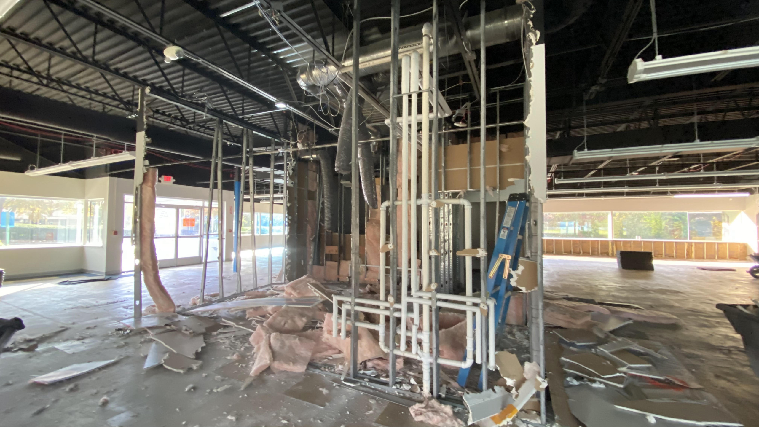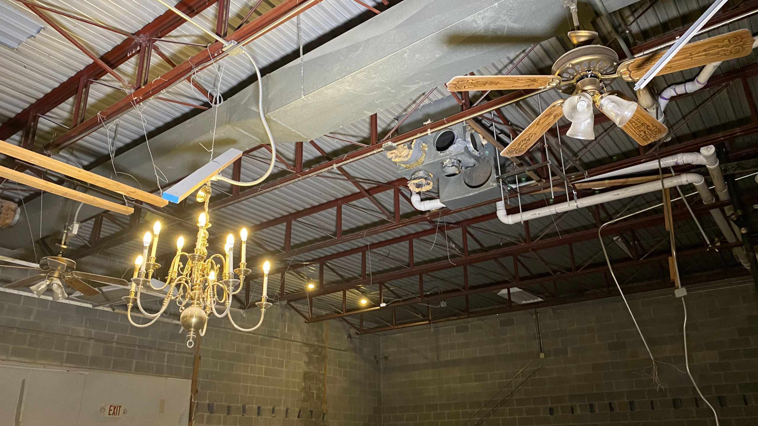 electrical and HVAC in ceiling partial demolition, interior of building